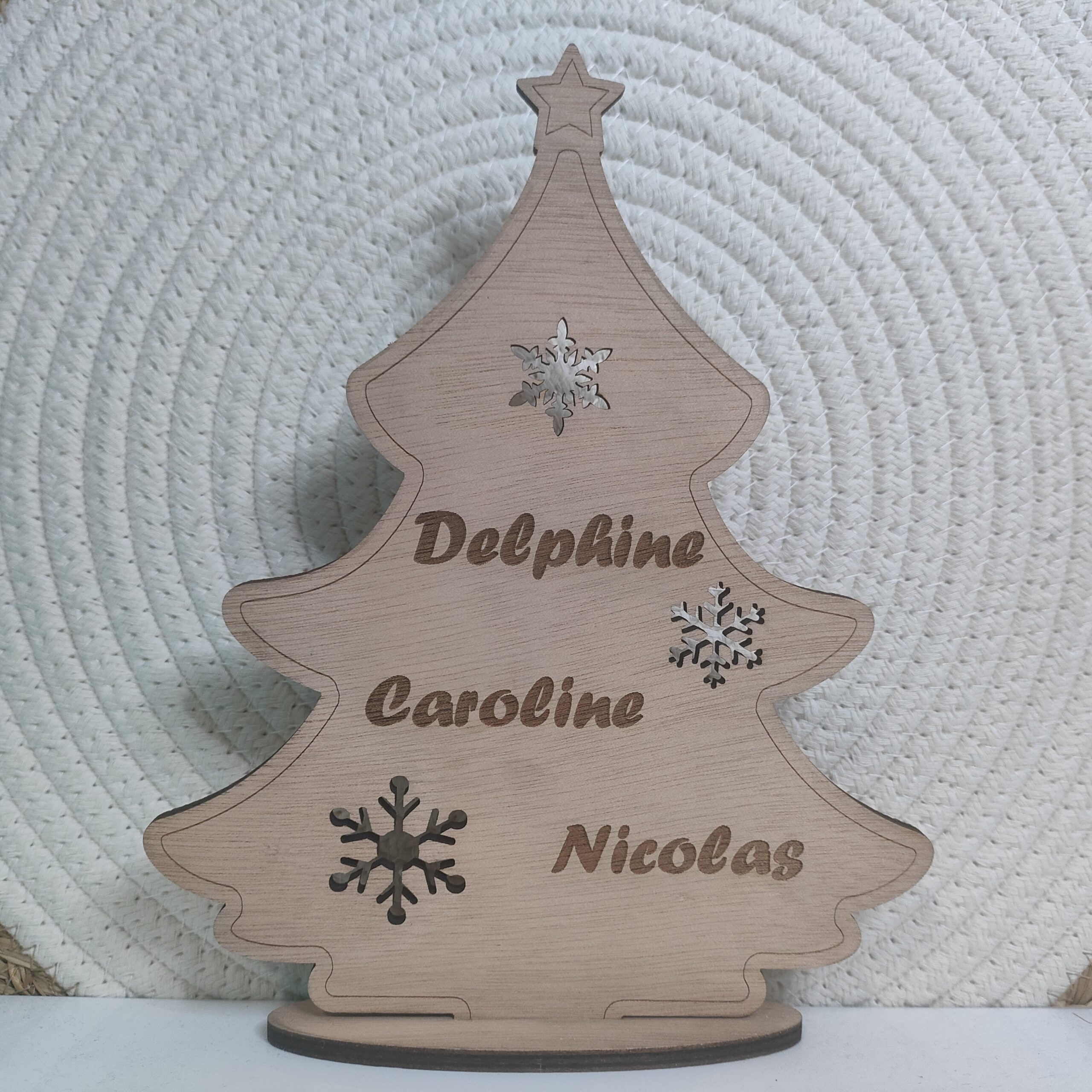 Sapin de Noël personnalisé avec le nom de vos convives, idéale pour ajouter une touche personnelle à votre centre de table.